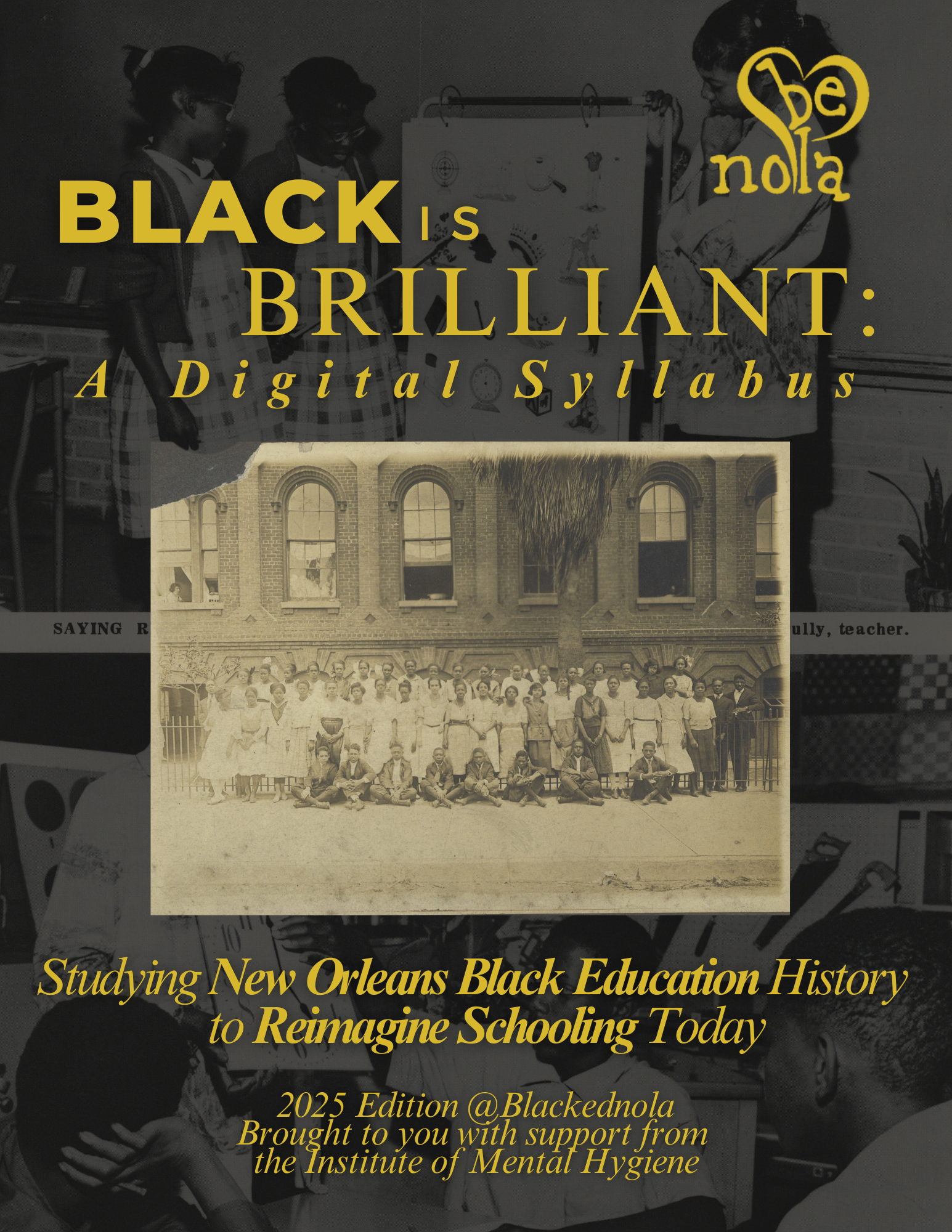 Rooted in New Orleans' rich legacy of Black educational excellence, the Black Is Brilliant Digital Syllabus explores the transformative power of Black education through five essential themes: Belonging, High Expectations with Love, Exposure (Culturally Relevant Learning), Legacy (Cultural Retention), and Rigorous Sight. Drawing from historian Robin D. G. Kelley's concept of "freedom dreaming," this resource celebrates the impact of New Orleans Black educators and institutions while examining current policy challenges. Whether you're an educator, policymaker, or community member, discover the power of Black educational practices to shape our city's future and learn how you can support their preservation and growth.